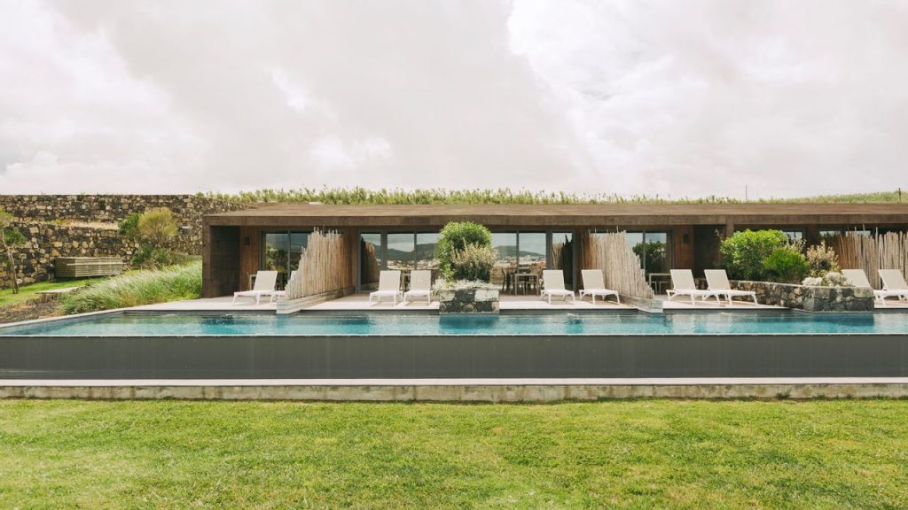 El diseño arquitectónico del complejo y la selección de materiales fueron seleccionados para mezclarse armoniosamente con el entorno natural. La arquitectura minimalista se ajustó a la morfología de la tierra, con el fin de minimizar su impacto en el paisaje natural.