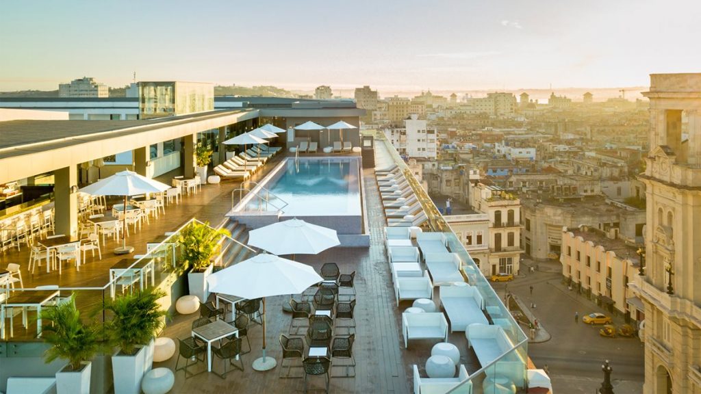 Te recomendamos alojarte en el Gran Hotel Manzana Kempinski de La Habana. Construido originalmente en 1894 como la primera galería comercial de estilo europeo en Cuba y situado en el corazón de la Habana Vieja, con vistas directas al Capitolio y al Gran Teatro de La Habana. Además, el famoso Castillo del Morro está a 10 minutos en coche. Es el primer hotel de lujo en Cuba y sus suites son muy amplias con techos altos y ventanas francesas que se abren a la vieja ciudad. En sus instalaciones, encontrarás una variedad de restaurantes y bares para degustar su deliciosa comida. Entre ellos, un “cigar bar” y un bar panorámico en la azotea con vistas espectaculares de la ciudad. En la azotea también podrás disfrutar de su estupendo spa, gimnasio y su gran piscina desde donde contemplar el bullicio de la ciudad mientras disfrutas de refrescante baño.