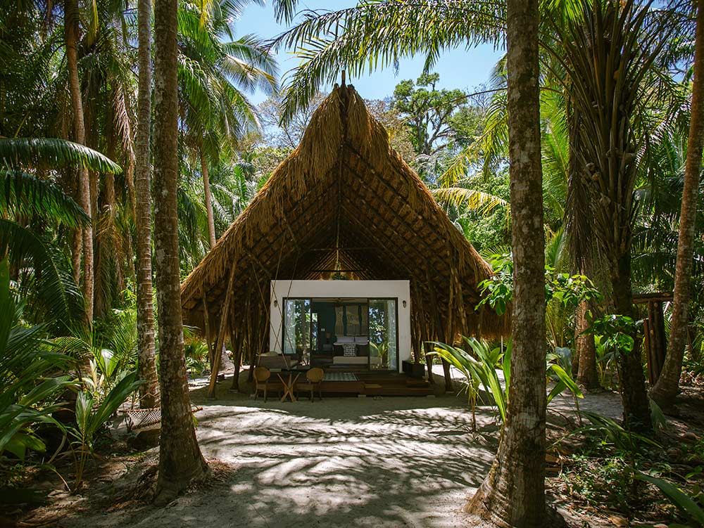 Cada casita de lujo frente al mar (hay 8 casitas), está escondida entre palmerales con un camino privado directo al océano y a 1,3 km de la Playa Palenque. Diseñado para vivir su interior-exterior al máximo, disfrutarás de una amplia sala de estar y un baño al aire libre. Disfrutarás de todas las extravagancias que esperarías de un hotel de lujo de cinco estrellas pero en medio de la selva, materiales naturales y arena blanca.