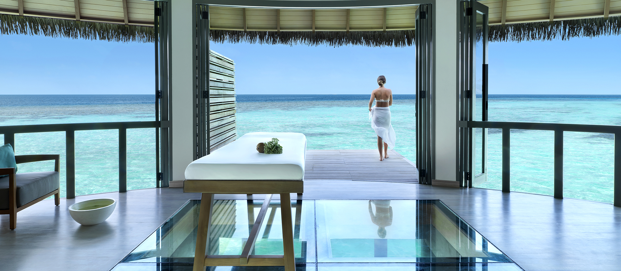 En consonancia con los encantos rústicos de la cultura maldiva, las 113 villas y residencias en la playa y sobre el agua, tienen una estética fina y elegante, ofreciendo una increíble sensación de espacio y unas impresionantes vistas al océano.