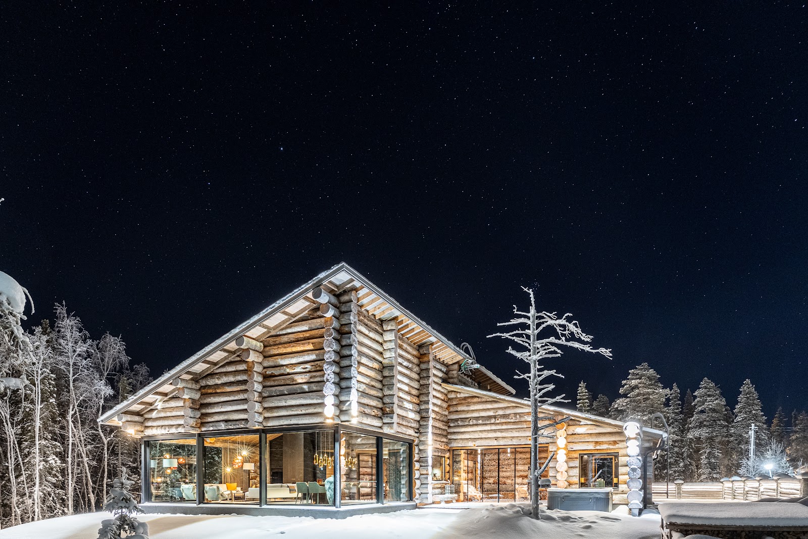Las villas combinan el diseño escandinavo contemporáneo con la tradición finlandesa del contacto íntimo con el entorno y la naturaleza. Grandes ventanales que enmarcan el precioso paisaje y las auroras boreales, chimeneas que invitan a las charlas en familia, saunas y jacuzzis privados que se convierten en rituales de relax. Aquí, cada generación encuentra su espacio, pero también un punto de encuentro donde los recuerdos se crean juntos.
